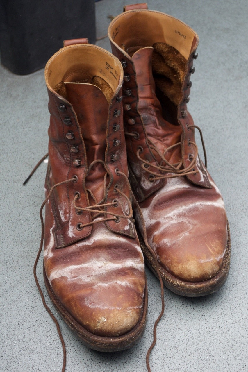 - Dry: Afterwards, he stuffs them with newspaper and puts them in a well-ventilated place to dry. “In the beginning, the newspaper will need to be replaced frequently,” he says. “But once the boots are moderately dry, a wooden shoe tree will suffice.” The key is to help them along in the drying process before any mold has a chance to form, but you don’t want to stick them near an actual heat source. “If you place your boots near something like a fireplace or radiator, the leather will dry too quickly, harden, and become prone to cracking.”