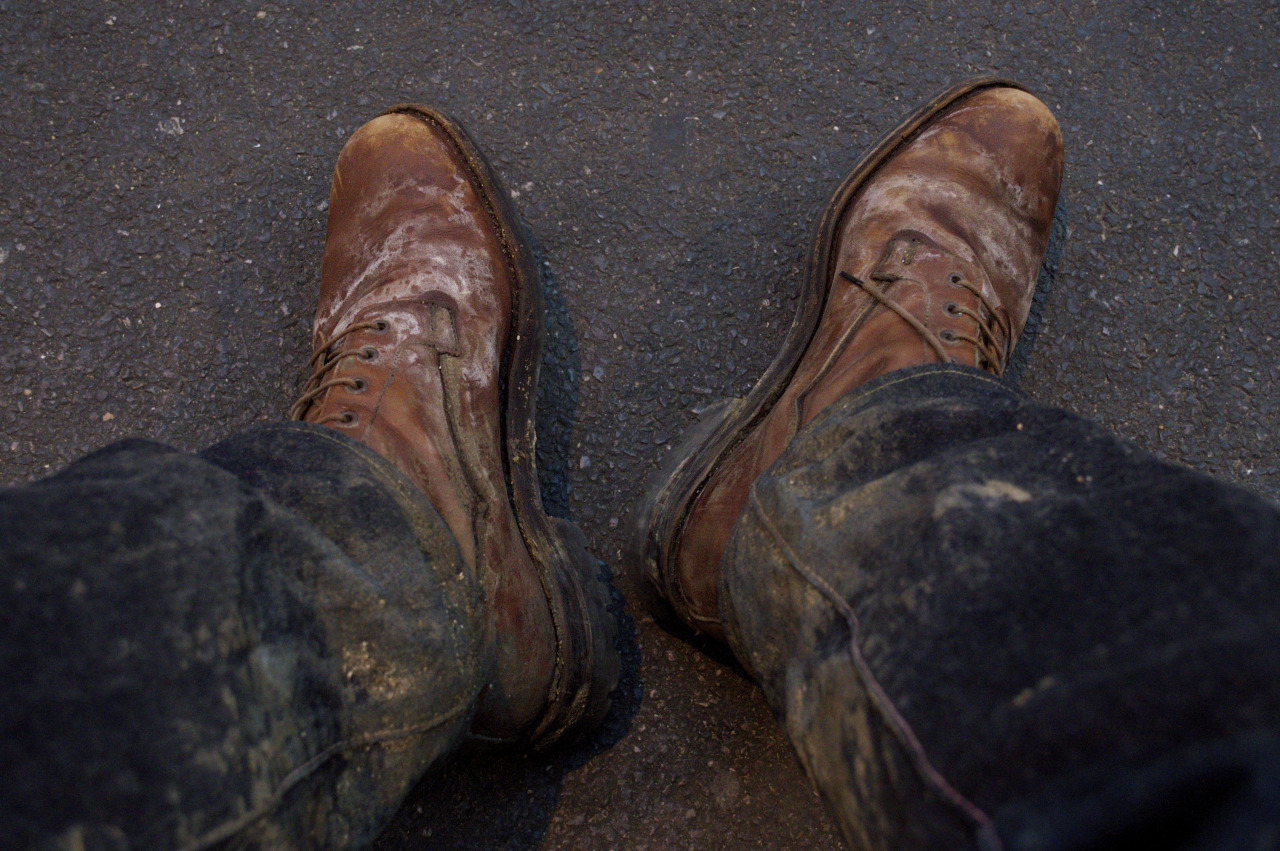 - Condition: Once the boots are dry, Chris uses Obenauf’s Heavy Duty Leather Preservative to help restore some of the oils. “I massage it into the leather by hand two or three times. Then I give the boots a quick brush down and they’re ready for my next trip.”
