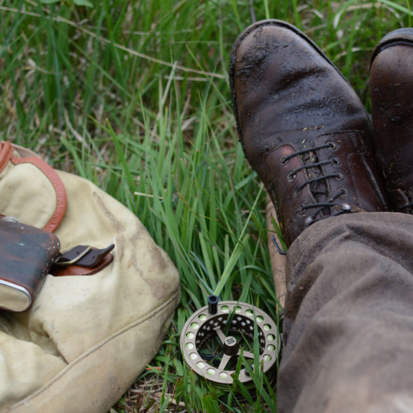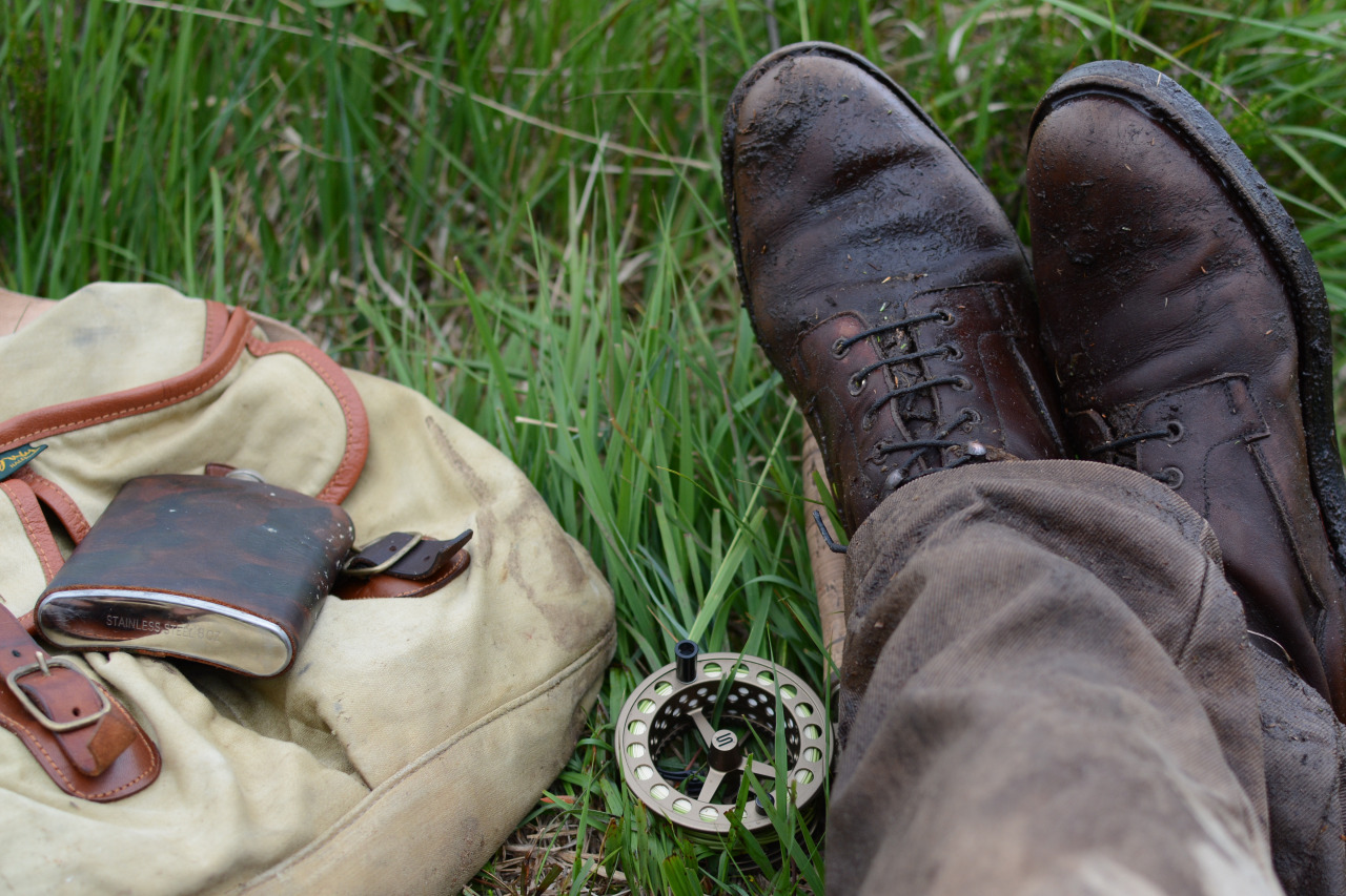 Those boots are Crockett & Jones’ Snowdon, which are made from water-resistant, waxed-hide uppers and a Veldtschoen construction (veldtschoen is a Afrikaans word which literally means fieldshoe). The protective welt helps stop water from seeping in through the bottom, while the half-bellow tongue stops it from coming in at the top. They’re excellent at what they do, but they’re not so waterproof that they can stand being submerged in water for long periods of time (Chris knows because he tested them in his bathtub the first day he got them). For true water protection, Chris uses a pair of White’s Outdoorsman, but they’re not as easy on the feet, so the C&Js come out when Chris anticipates a bit more waking than wading.