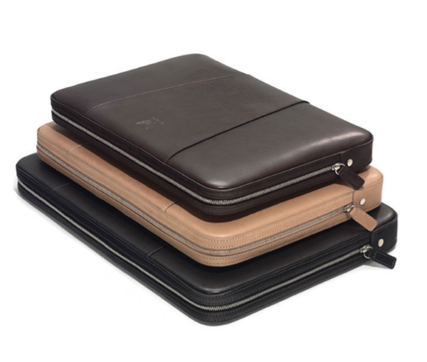 There are also some really nice contemporary designs by Scandinavian companies such as Mismo, c.dellstrand, P.A.P. Accessories, and wood wood. For something that has more of a traditional sensibility, consider Saddleback Leathers and Restoration Hardware. Saddleback Leathers is known for making very high-quality leather goods, but I suspect Restoration Hardware is using cheaper materials (though, to be fair, I haven’t had a chance to handle it). I also like WM J Mills and La Portegna. Their sleeves have handles, which may be convenient if you plan to carry them on their own.