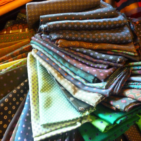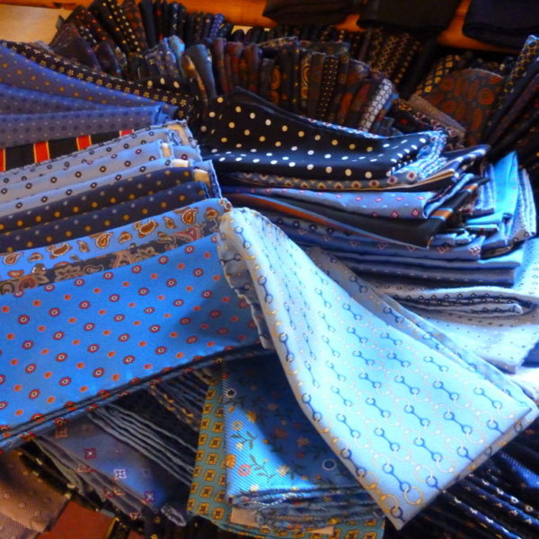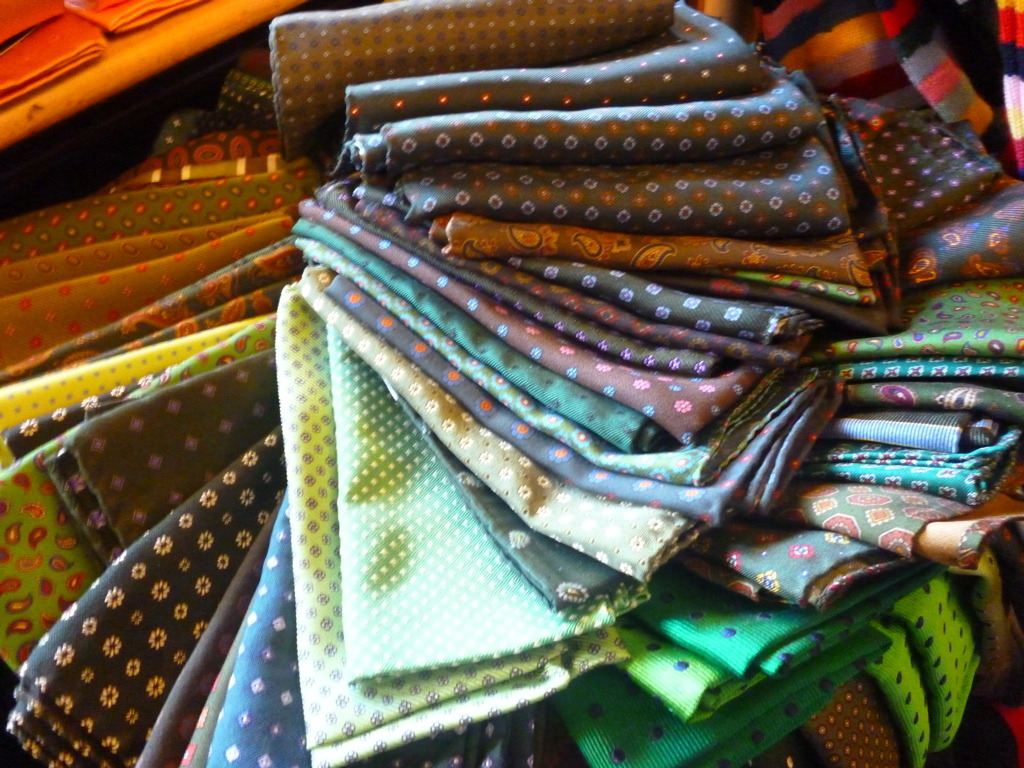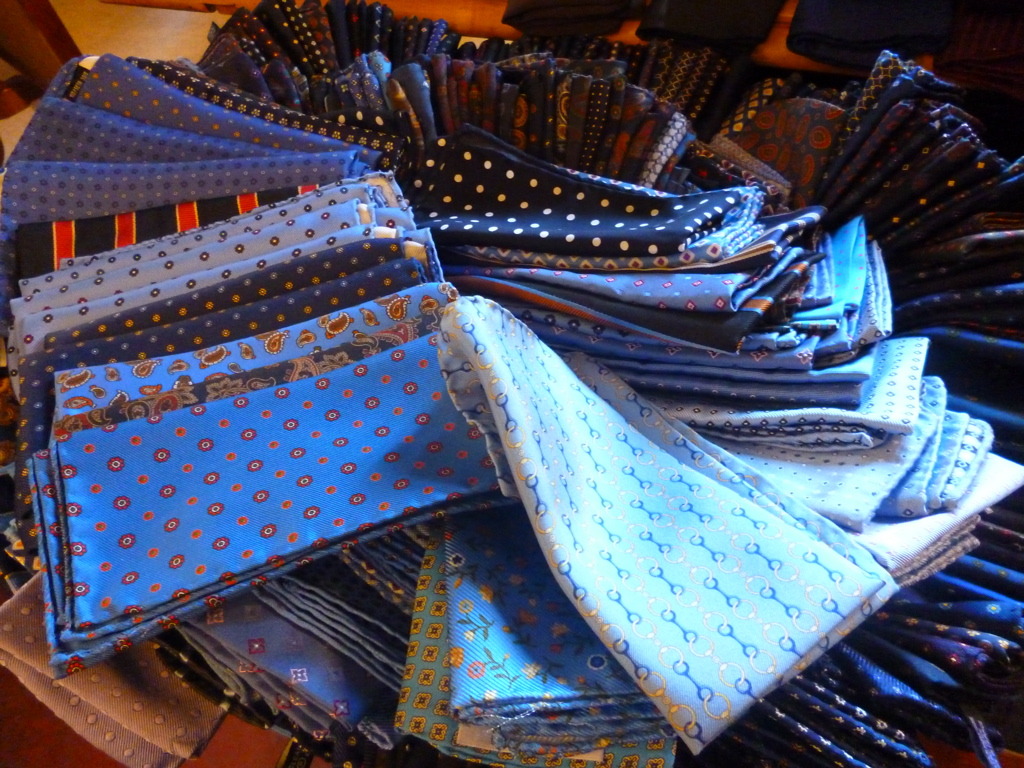 A selection of pocket squares at Wilhelm Jungmann & Neffe, a textiles and men’s accessories shop in Vienna’s “Innere Stadt” district.