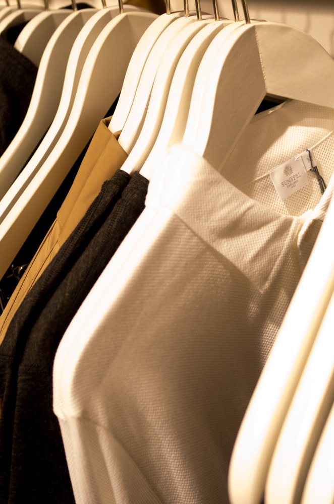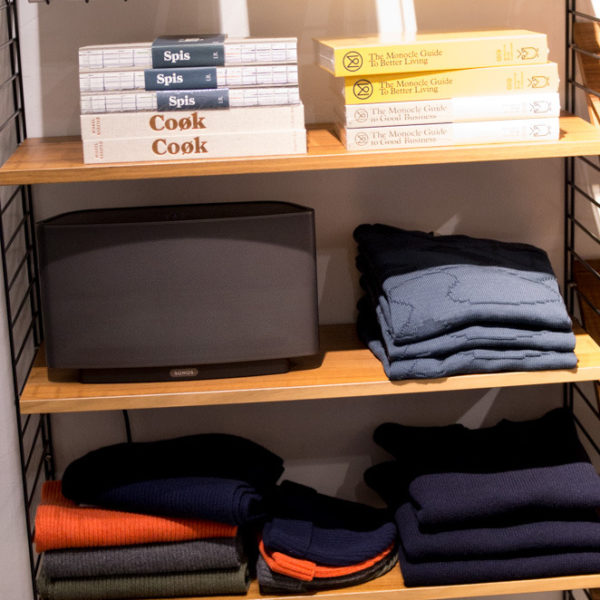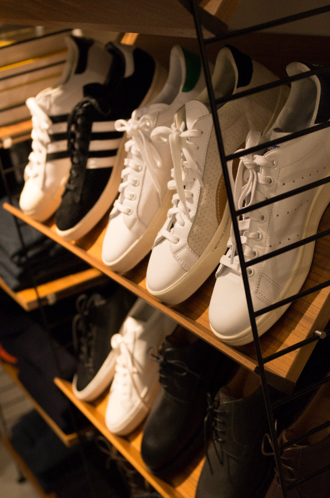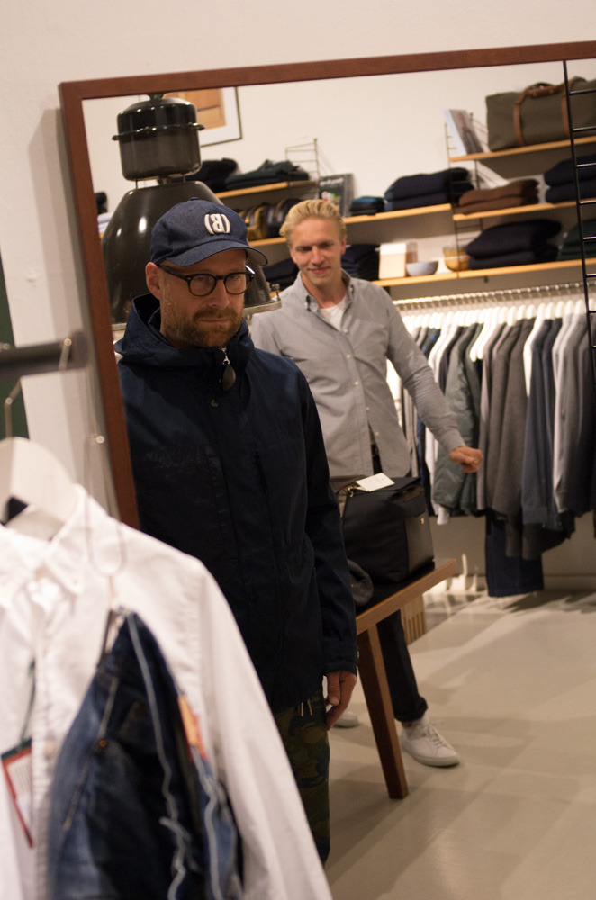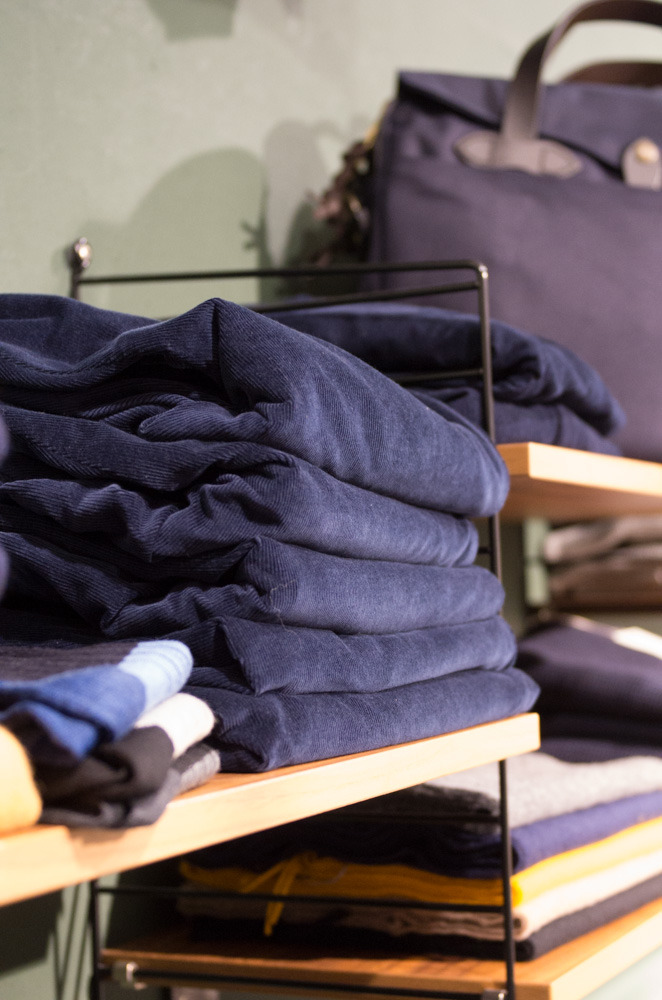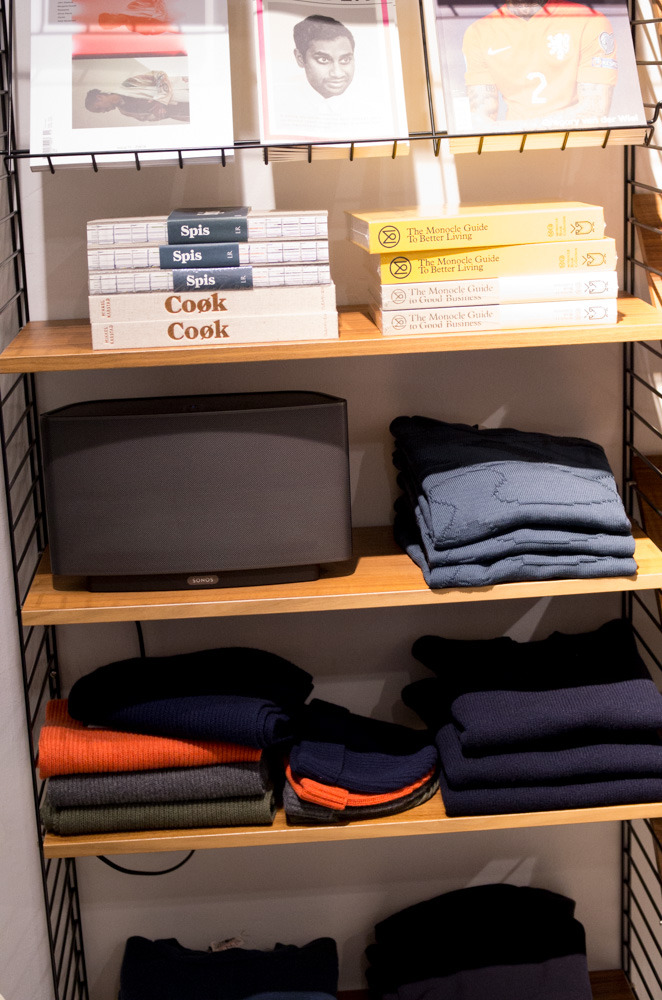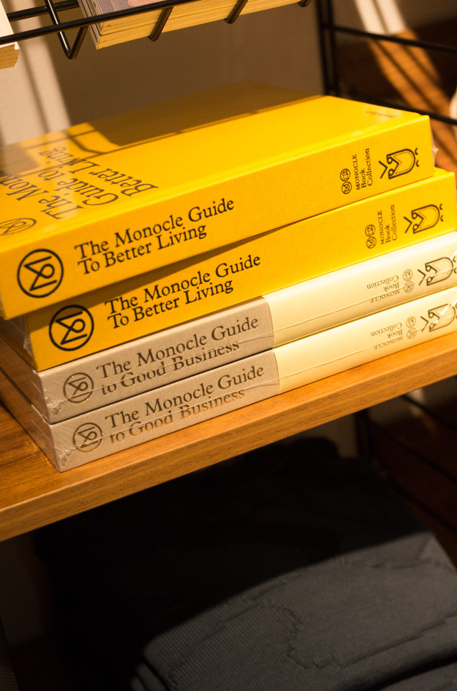 Goods is a lovely little shop with a selection of goods from around the world. There’s a nice mix of Japanese-style hyper-utilitarian stuff, heritage-oriented stuff, and more modernist Scandinavian styles. Eskar tried on a coat, and I gravitated towards a two-pack of white t-shirts from Garbstore. The service was informative and pleasant, and we had a nice chat about some of the books and magazines the store sells. After the disappointement at TBS, friendly help in extraordinary circumstances was a real breath of fresh air.