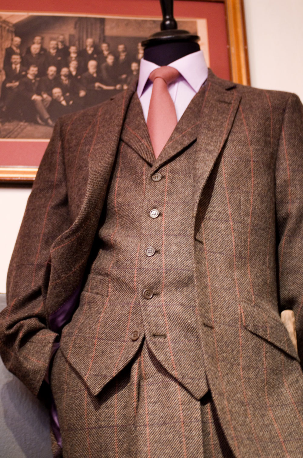 The shop offers one of the widest selections of tweeds I’ve had the chance to see in a clothing store. There are serious, sedate tweed suits and bold, outrageous ones. Something for every occasion. A handsome and dandyish Kenyan man who worked for the United Nations was placing a made-to-measure order when I stopped in. One sportcoat relatively serious, one with a blinding red overcheck. Both looked like they’d come out looking tremendous.