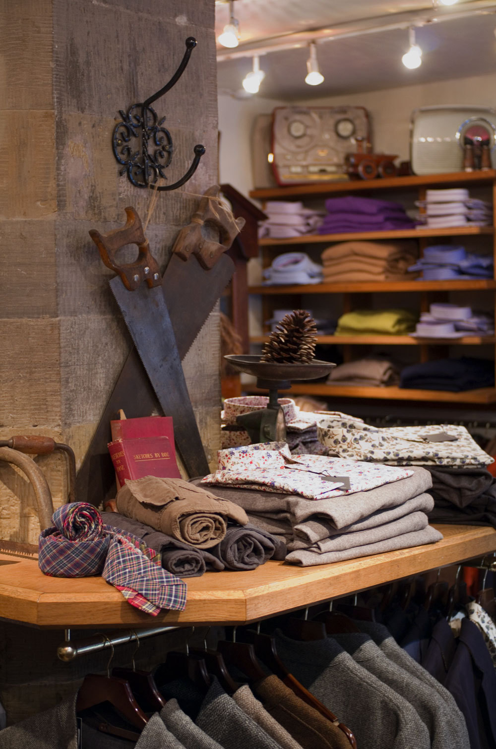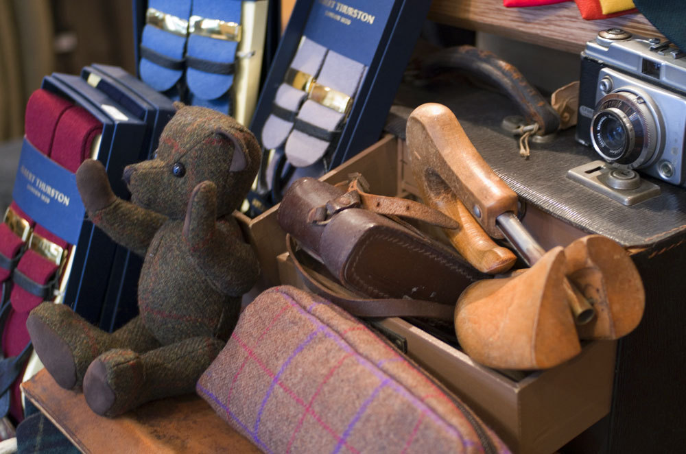 The shop began in the 1980s featuring more standard fashion fare, but the owners quickly found that despite Edinburgh’s status as one of the cultural capitals of Scotland, which itself is the world’s capital of tweed, there wasn’t much decent tweed to be found. They experimented with tweed trousers, sold them quickly, and within a few years they were off to the races, leaving t-shirts behind in favor of breeks and braces.