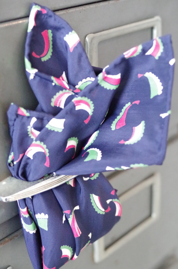 I spent about a year collecting rayon from the 1940s and 50s to make our collection of vintage rayon pocket squares. We just realized we’d allow some of the few that are left to drop out of stock in our store – if you’d like to get in on the action, take a look at what we’ve just relisted.