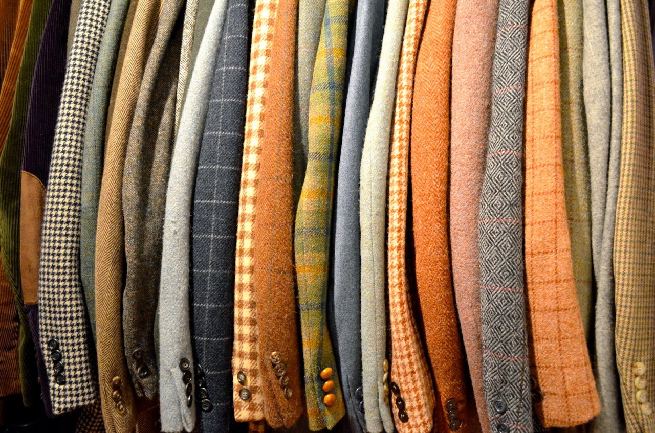 Although this is pretty good, standard advice, I’ve long thought that the most useful color for sport coats is actually brown. Especially for this time of year. Think of dark brown or golden tan corduroys, or any kind of tweed – solid brown Shetlands, fuzzy herringbones or houndstooths, or any of the checks you see in the first photo above (which is of the Duke of Windsor’s closet, who was a very daring and dandy dresser, but also know the value of sedate brown coats).
