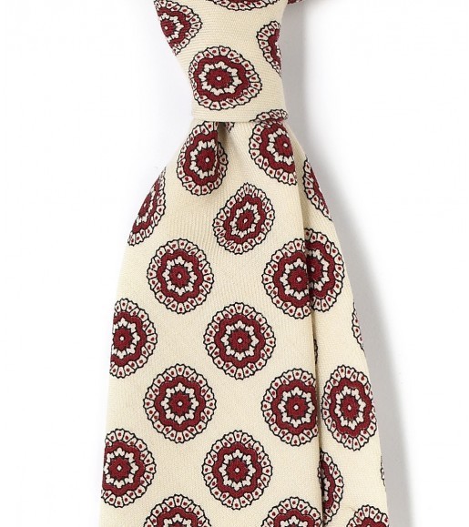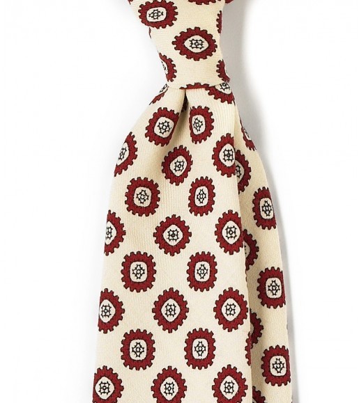 In classic men’s style, it’s often easier to wear darker ties because a man’s tie is supposed to be darker than his shirt. There are a few exceptions, however. Take for example, ties with a buff-colored background. Buff is a kind of pale yellow-brown color that got its name from buff leather. The color is mostly seen on formal and informal waistcoats, but every so often, you’ll see it on ties as well.