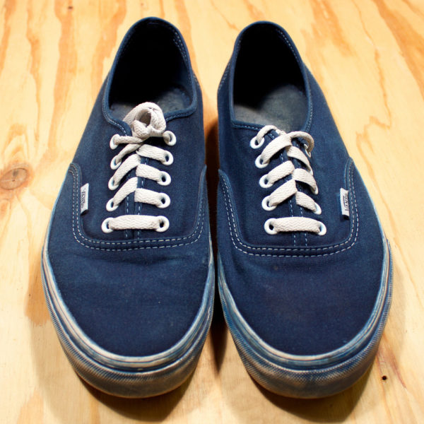 - Vans. Vans has a blue overwashed version of their popular Authentics this season. The upside to these is that they won’t bleed on you, and they’ll look broken in from day one. The downside is that you won’t get the experience of having dyed something yourself.