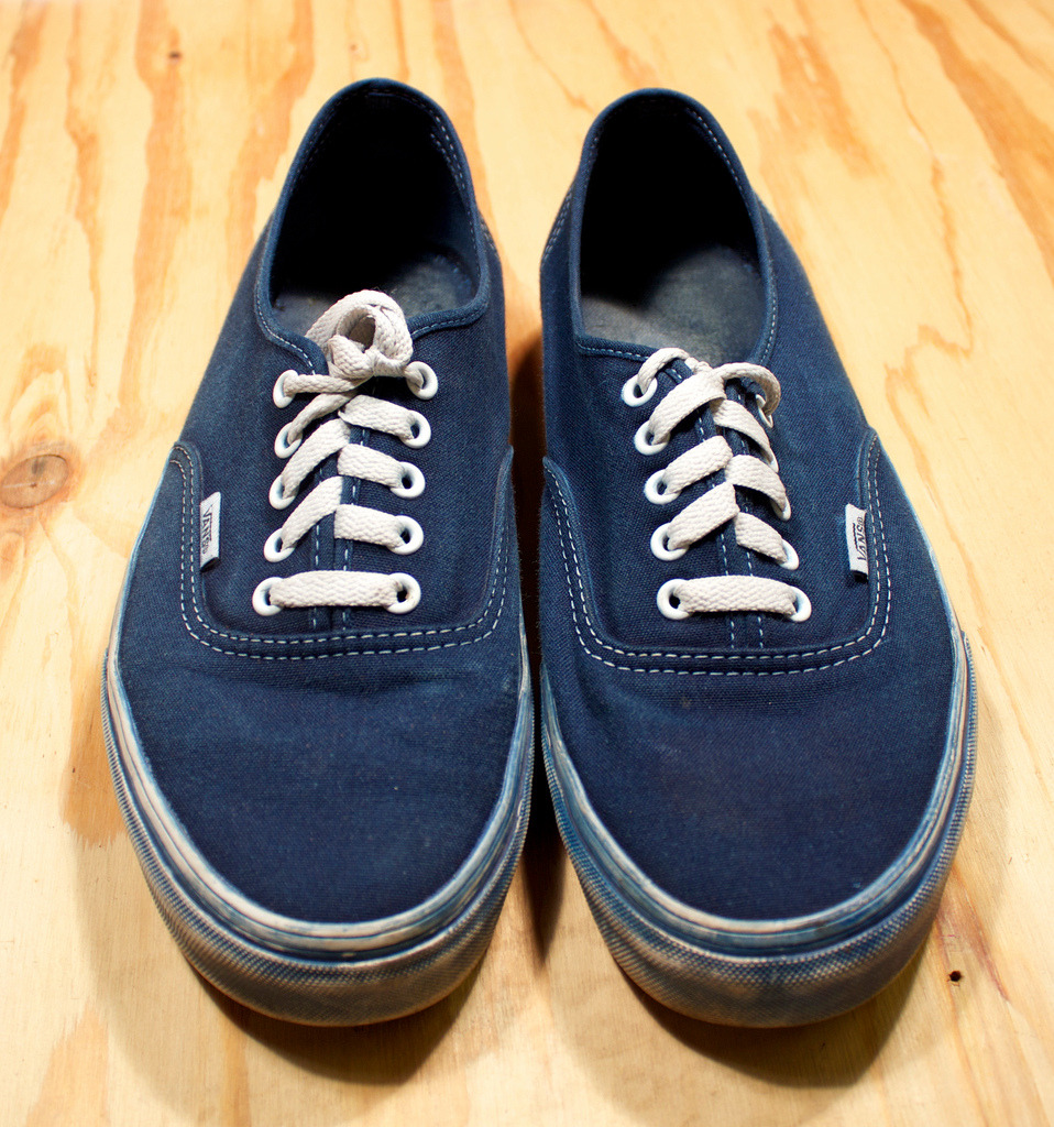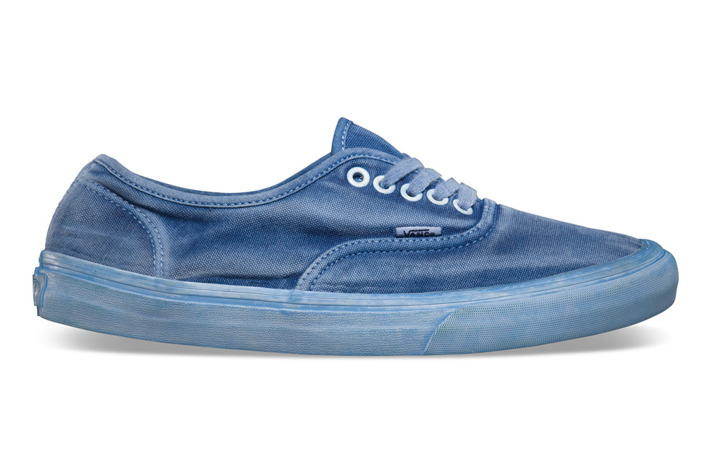 - Vans. Vans has a blue overwashed version of their popular Authentics this season. The upside to these is that they won’t bleed on you, and they’ll look broken in from day one. The downside is that you won’t get the experience of having dyed something yourself.