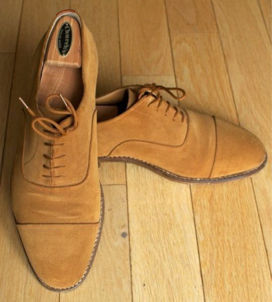 A nice pair of honey suede oxfordsnavy moleskins, and a brown leather G9 jacket in today’s roundup. If you’d like to find more items, use our customized search links for high-end suitsgood suitshigh-quality shirts and fine footwear