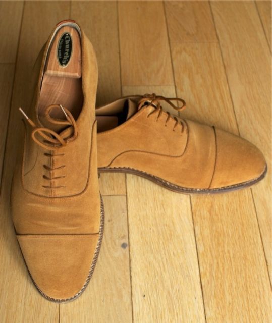 A nice pair of honey suede oxfordsnavy moleskins, and a brown leather G9 jacket in today’s roundup. If you’d like to find more items, use our customized search links for high-end suitsgood suitshigh-quality shirts and fine footwear