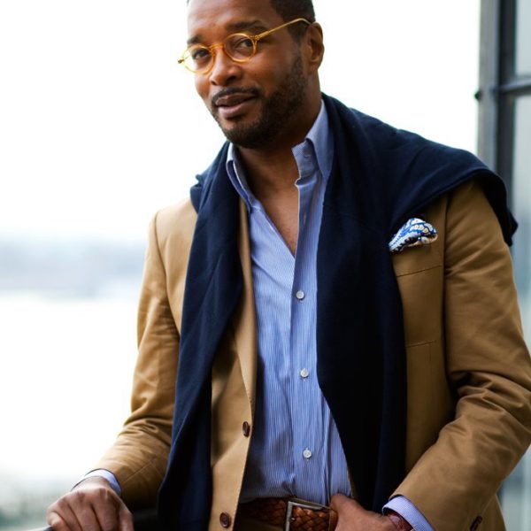5. Lose the Tie: A tie can be a nice way to accessorize, but an open collar this time of year can feel more comfortable. If you forgo the tie, try wearing a patterned shirt and/ or pocket square. They’ll help add visual interest, picking up slack where a tie would otherwise serve.