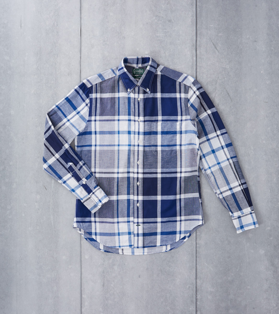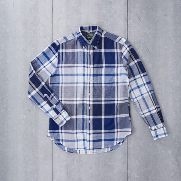 (pictured above: Eidos linen houndstooth sport coat, James Grose suede double rider, Kaptain Sunshine paper shirt, Trunk Clothiers’ store, Trickers single monks, Trickers Commando soled boots, Corridor indigo dotted shirt, Camoshita Skipper polo, and Gitman Vintage blue Madras shirt)