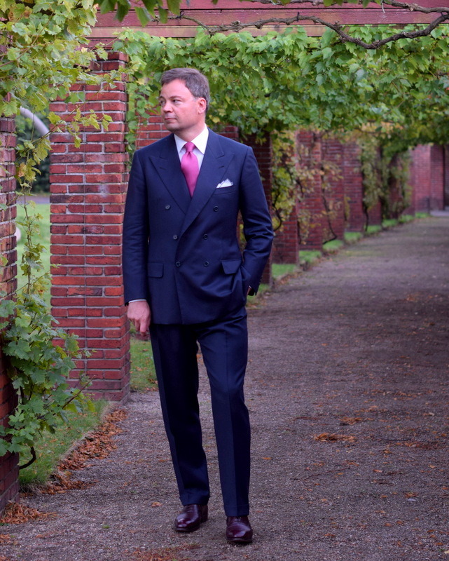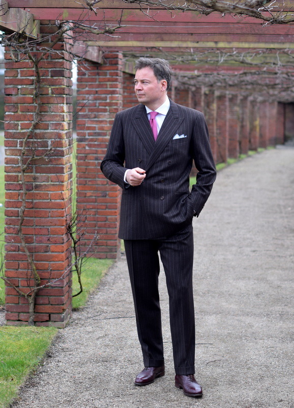 Torsten from Journal of Style recently commissioned three different suits from three different tailors. Their basic stylistic points are the same: double breasted jackets with peak lapels, welted pockets, and 6×2 closures. The only real difference is in the silhouettes – particularly in how the shoulders have been constructed.