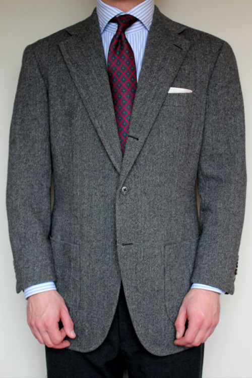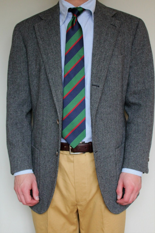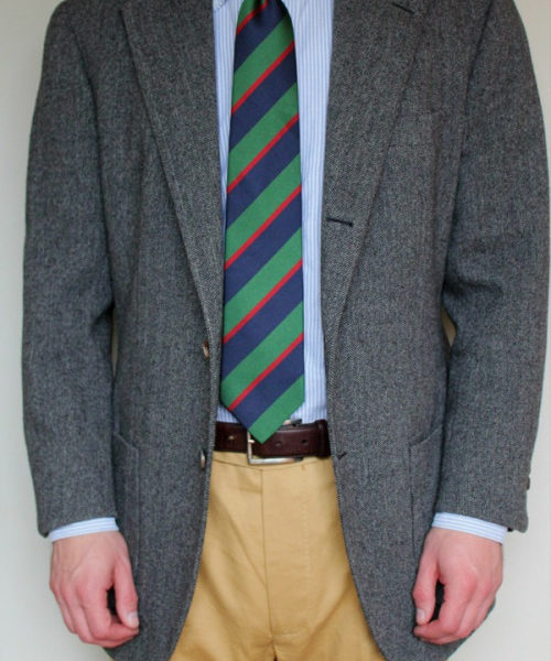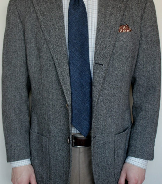 Grey sport coats can be tricky. One misstep and your sport coat can easily look like an orphaned suit jacket – something you pulled out of your closet, but forgot to take the matching pants. A safe option, however, is the reliable grey tweed, particularly something in a speckled wool or chunky herringbone. In the above photos, No Man Walks Alone writer William Phips shows how to combine a grey tweed in any number of ways – from “old British dude” style to American trad to something he calls “substitute teacher.” You can check it out here.