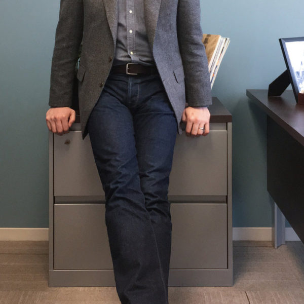You can knock the formality down a bit further by wearing jeans, but the territory here is filled with landmines. It helps to pay attention to certain details in order to get the look right: