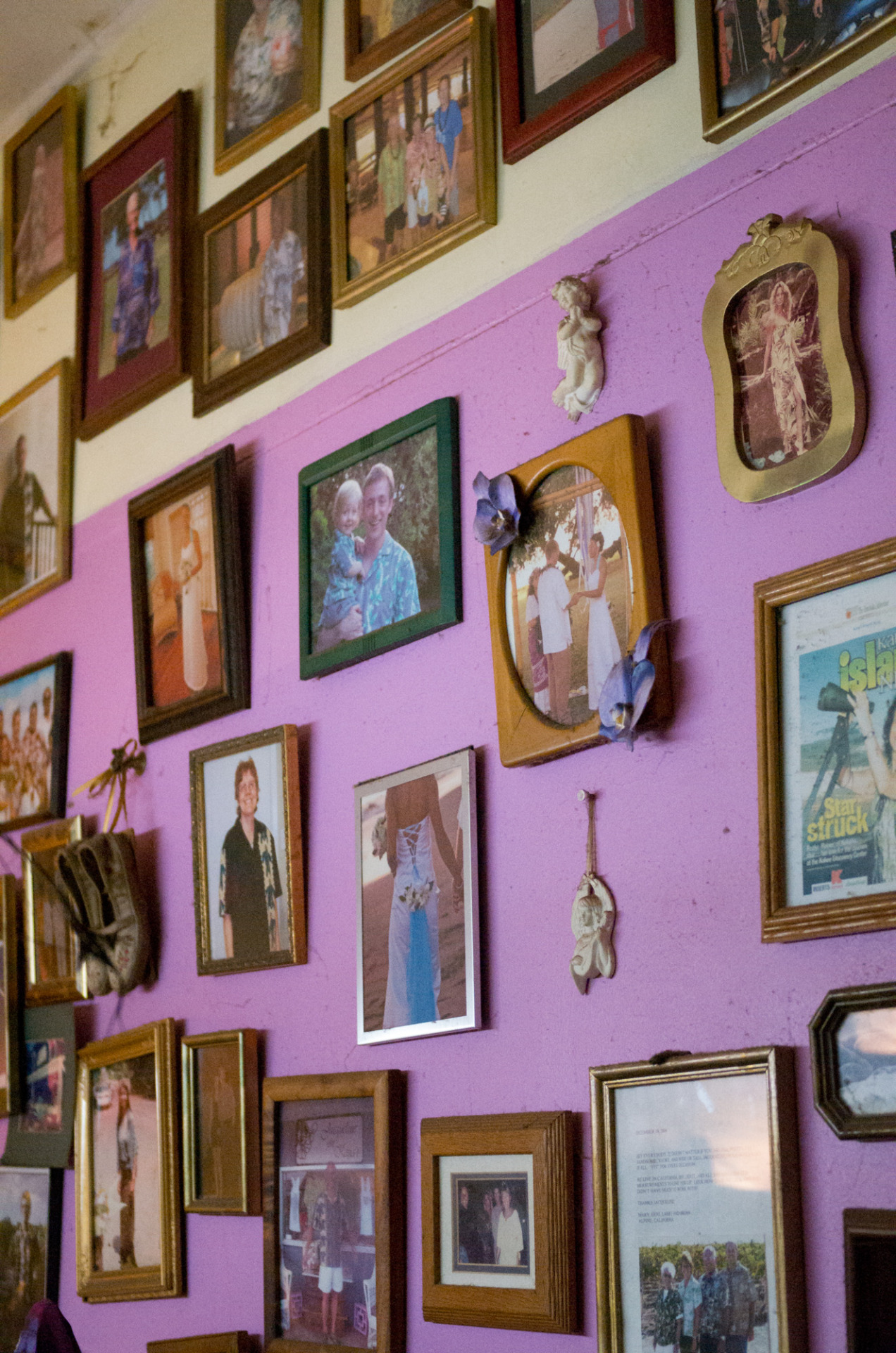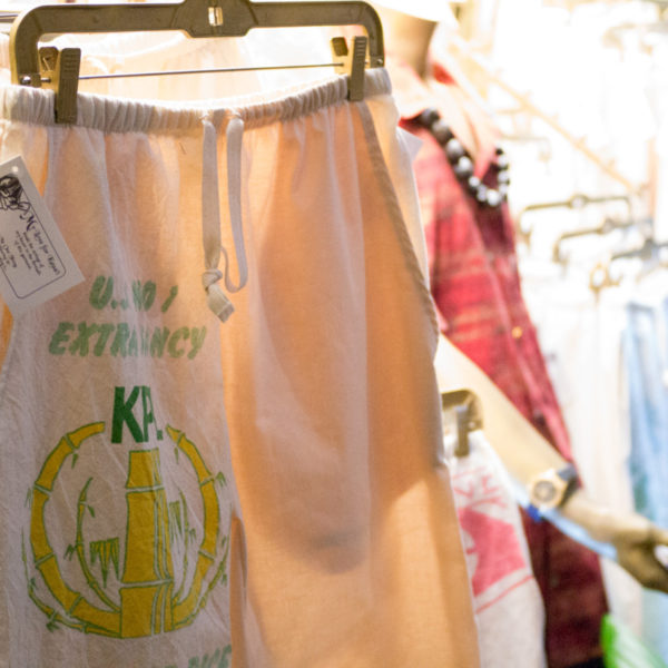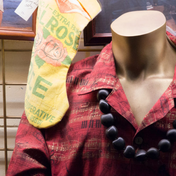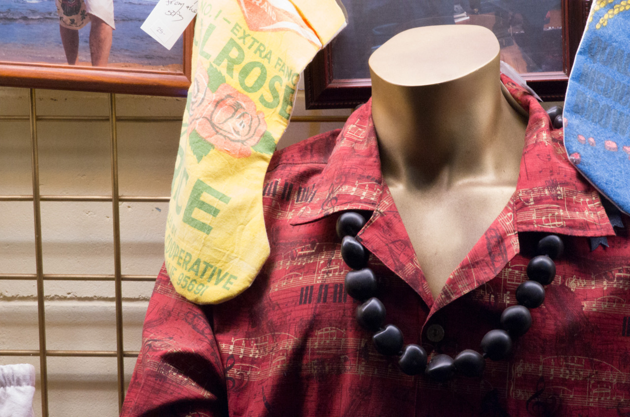 Inside the shop, you’ll find a variety of aloha shirts that Jacqueline’s made by hand, along with some little bits and bobs – aloha fabric Christmas stockings, some lounge shorts made from old rice bags. Mostly, though, you’ll find Jacqueline, her patterns and her sewing machine, getting to work on uniforms for the senior baseball team (they just won nationals in Albuquerque) or a shirt for a tourist who wandered in. She promises your shirt will be made in 48 hours, but from what I hear, she usually turns it around in two. The walls are lined with photos of satisfied customers.
