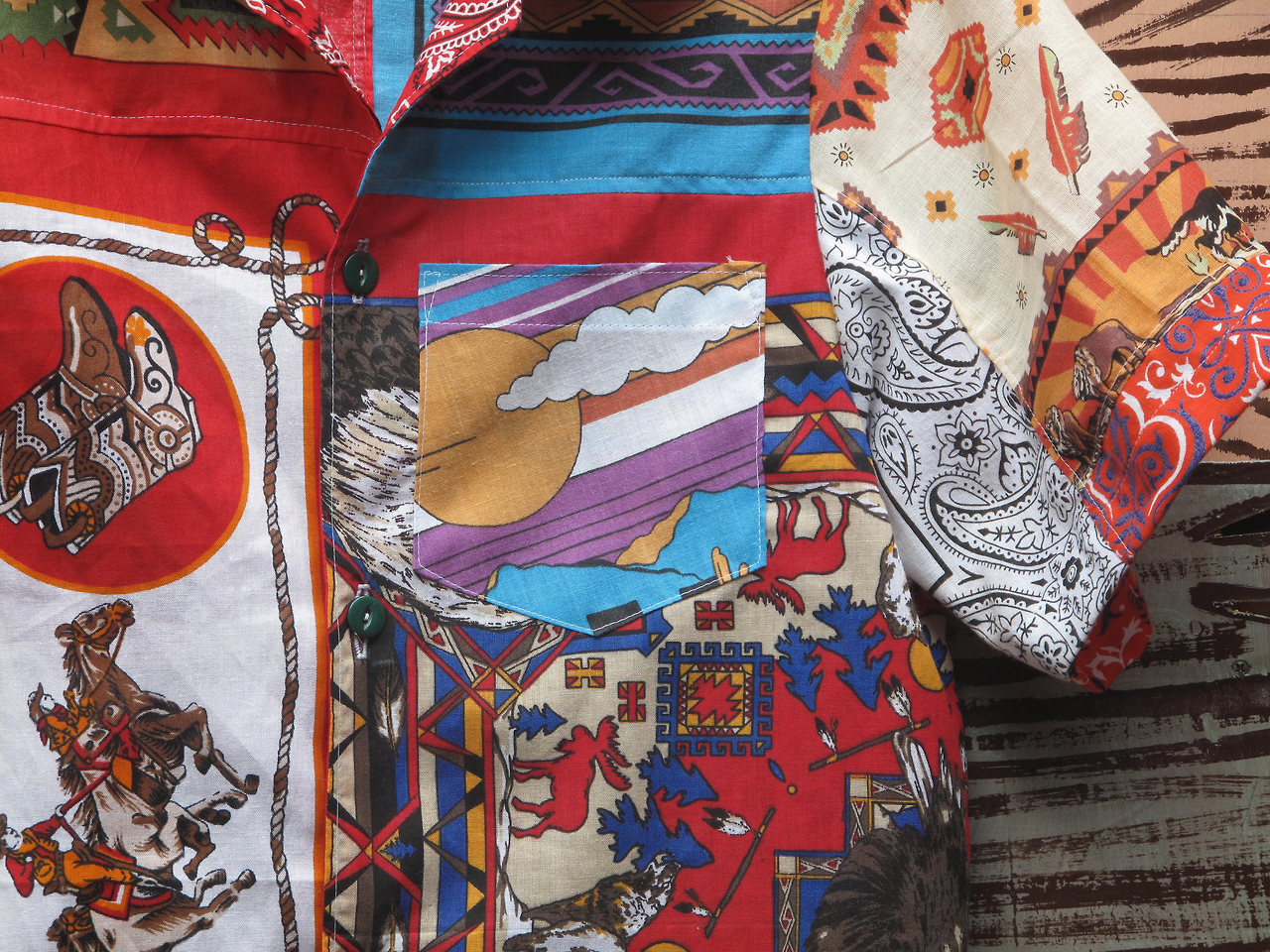 Tim lives in Atlanta and runs the vintage shop Countyline General on Etsy, and has also made accessories under the name Warhorse Workshop. (I first noticed Countyline General while hunting for stuff for our eBay roundups). He’s recently started making garments, and the results are intriguing. I talked with Tim about vintage collecting and the reasons why he started taking shears to those amazing vintage finds.