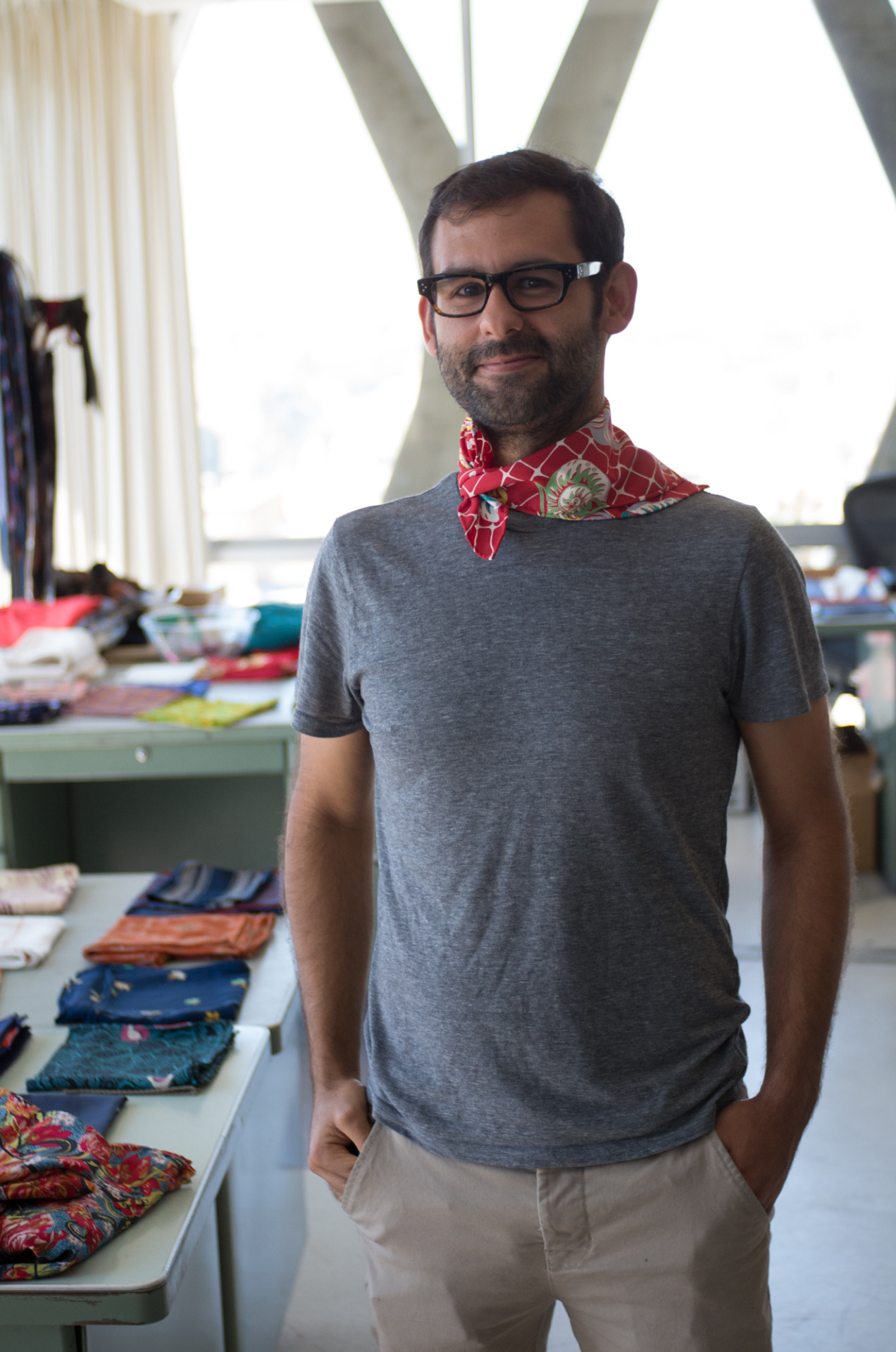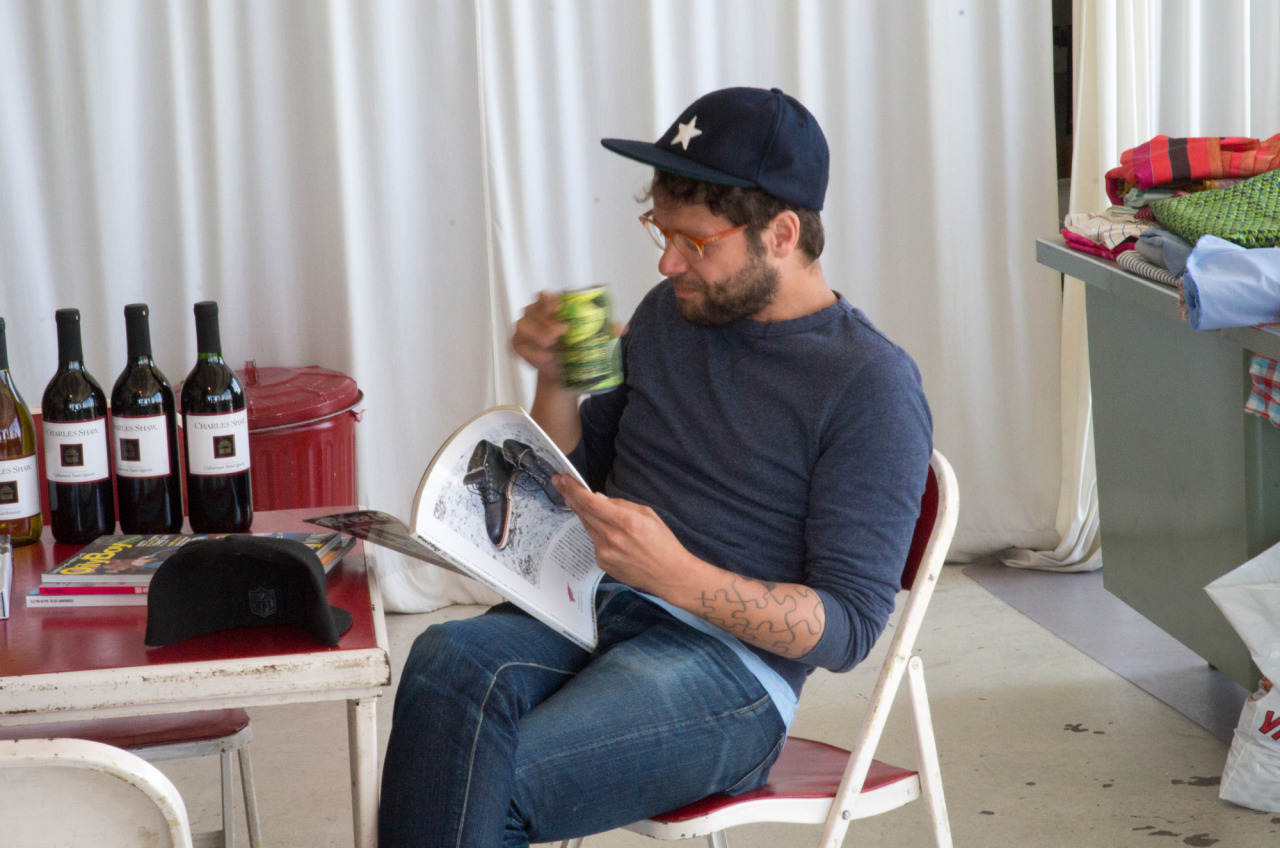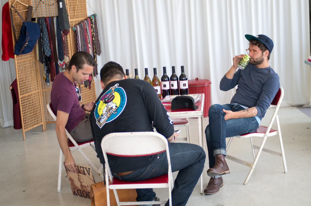 Luckily for a couple minutes at our sample sale I remembered to grab my camera and shoot a few snapshots. Note that my mom made the guy in the gray t-shirt wear a pocket square as a neckerchief, though he pulled it off impressively.