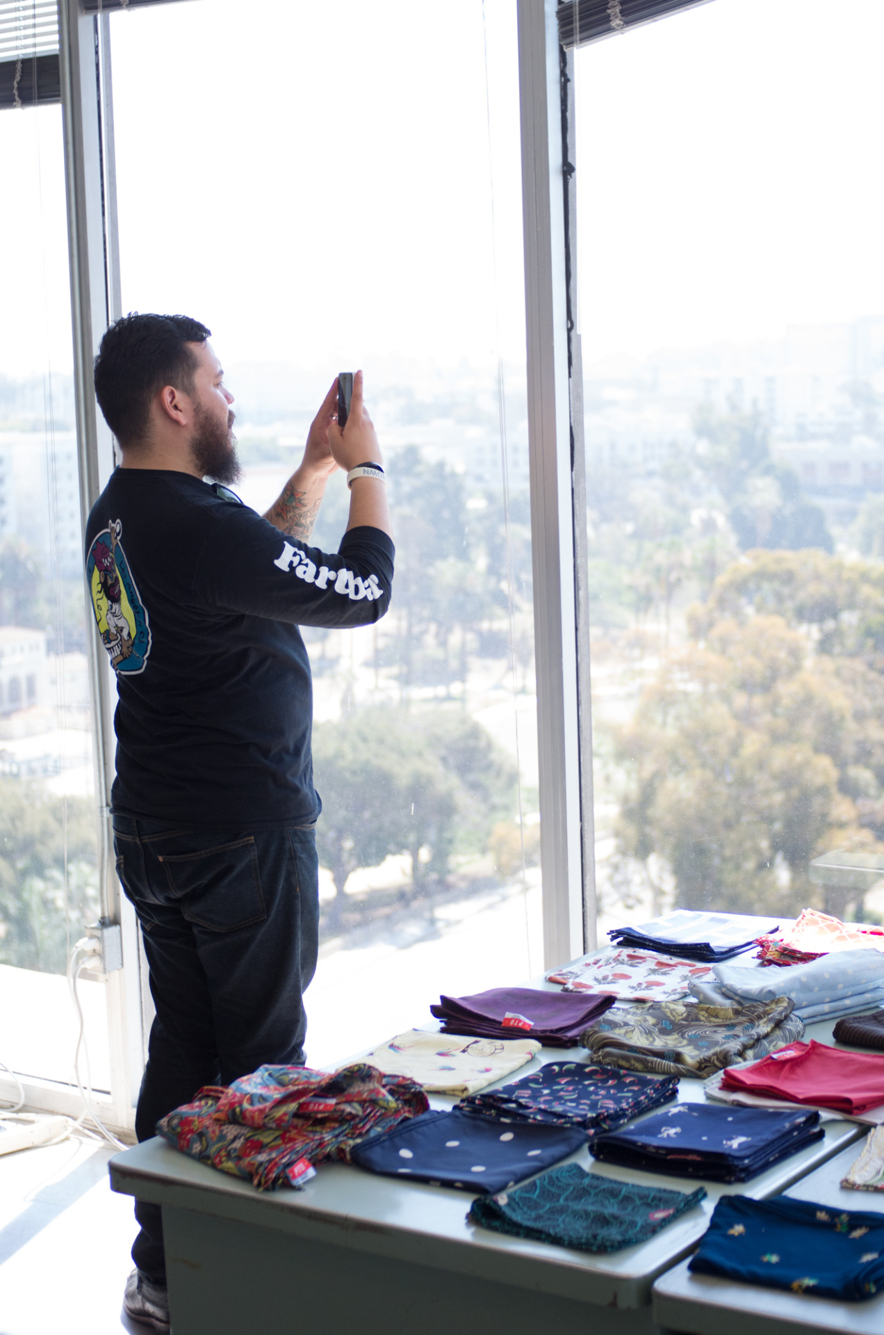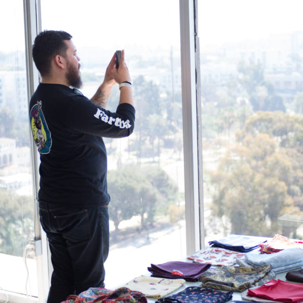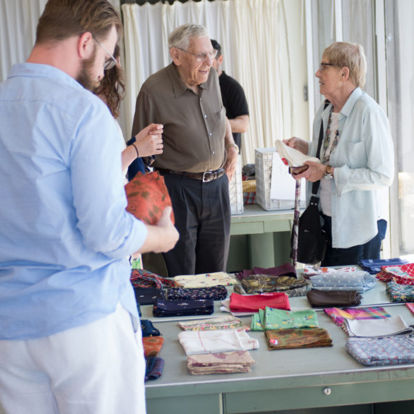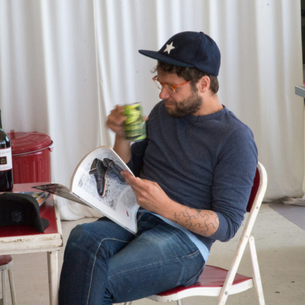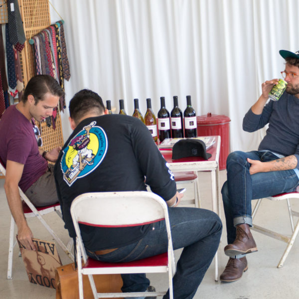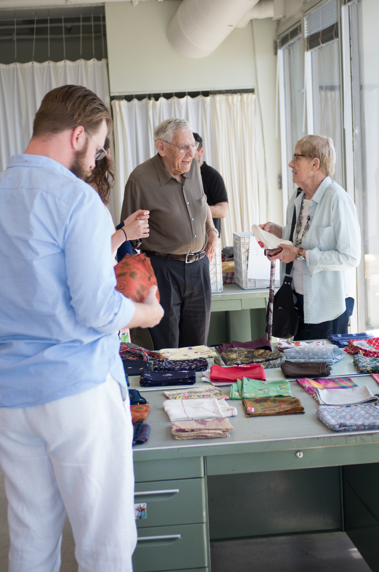Luckily for a couple minutes at our sample sale I remembered to grab my camera and shoot a few snapshots. Note that my mom made the guy in the gray t-shirt wear a pocket square as a neckerchief, though he pulled it off impressively.