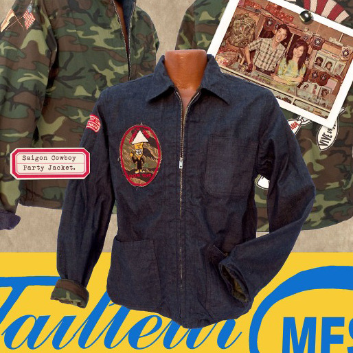 Loiron declined my request for a phone interview, but he did answer some of my questions over email. He said he intended the jacket to have an anti-war message: “There’s a skull with an Uncle Sam stars-and-stripes top hat dropping bombs, and several messages in French and English. ‘Pax Americana,’ ‘Vive La Mort,’ ‘Après Moi, Le Déluge’ … each underscoring the absurdity of it all.“ The man depicted on the patch, he said, is meant to represent the Viet Cong guerrillas telling the US to go home.