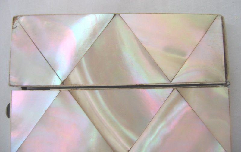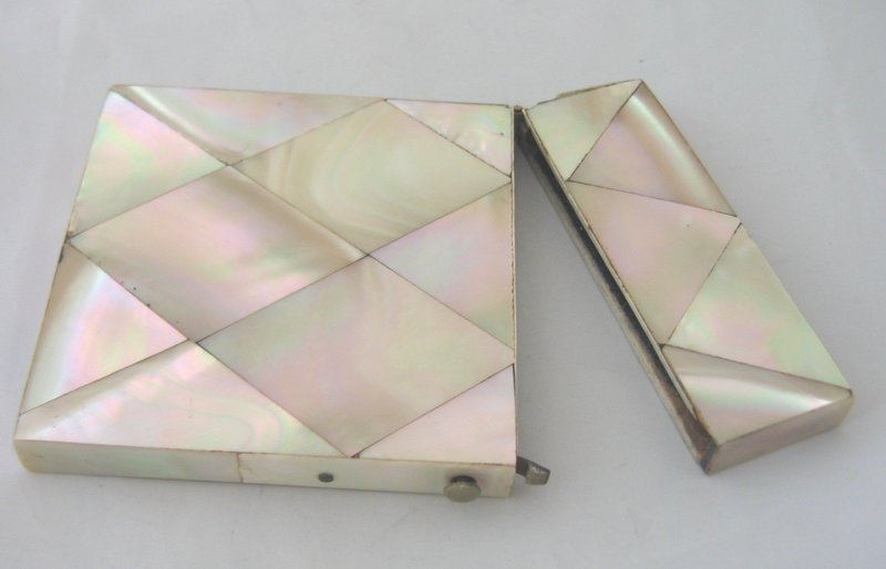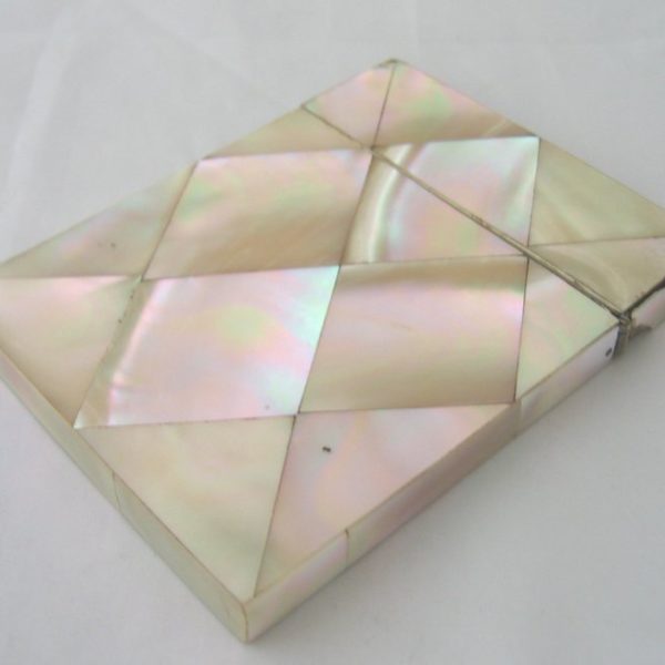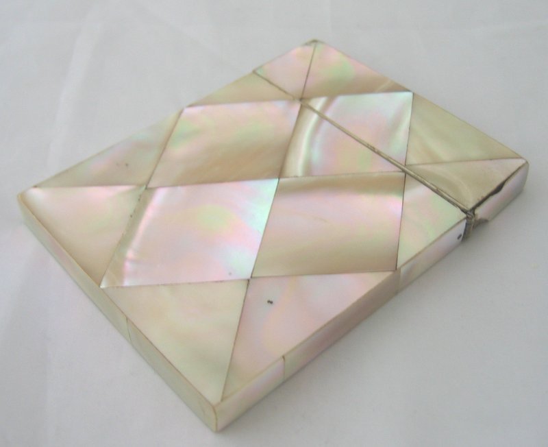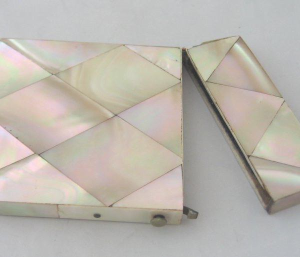 Card cases such as these were common among well-to-do Europeans during the Victorian era. They were invented in China, but became popular on Europe’s continent during the 19th century, then quickly spread to England and America. They were usually made from mother-of-pearl, sterling silver, or paper mache, and would often be decorated (though men’s cases tended to be more simple and than women’s).