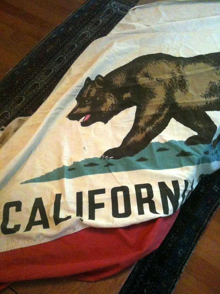 My favorite flea is the PCC, but the Rose Bowl is the biggest of the bunch. I headed out this morning looking for furniture for my new place, and ended up with a lovely coffee table, a big old California flag and a concrete bunny rabbit.