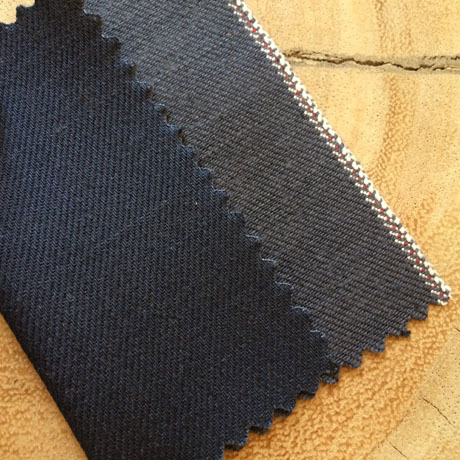 - Fabric swatch of Gustin’s “Italian Indigo x Grey” denim