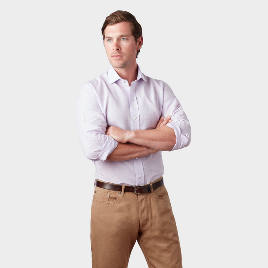 July calls for cooler wearing shirts, and Ledbury has them in a mix of lightweight cottons and linens. Their head shirt stylist, Alex, suggests their Landon Stripe for summer BBQs. A pure cotton with red, white, and blue horizontal stripes, it’s also a good shirt for election year. For pure linens, Ledbury’s Lavender Eastwood Linen can be used for weekends and at the office, but if you want to get the best of both worlds, Alex suggests their Nautical Jacquard. Made from 56% cotton and 44% linen, it has the cool feel of linen, but with fewer wrinkles.