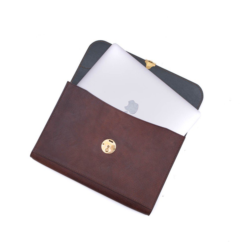 - Laptop case made from 200+ year old leather, available at The Hanger Project