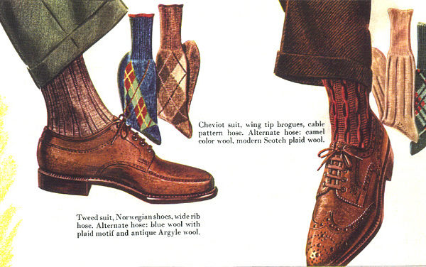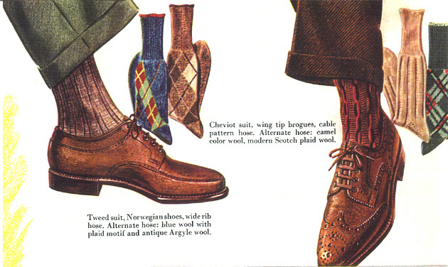Derbies were also worn with suits, but they were more common with relatively more “casual” suits – a tan gabardine wool suit, a suit with a bolder pattern, or a suit that would typically be worn out into the countrysides. With something like a plain navy, worsted three-piece, you’d more likely find men wearing something like a simple, black, plain toe oxford. With a chunky herringbone tweed suit, it might be a brown suede derby.