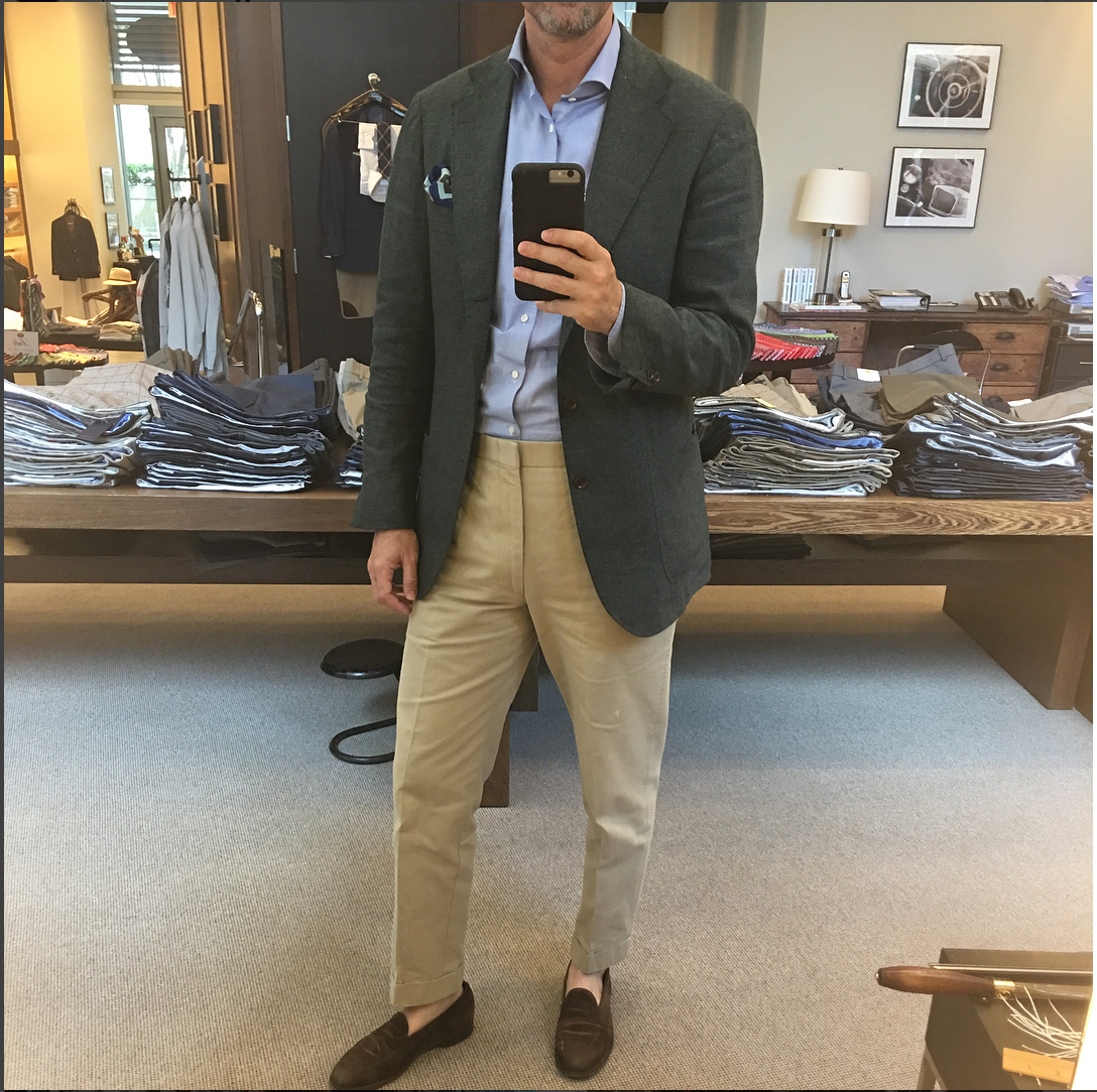 Our Instagram followers are some stylish people, so once a week, we like to bring you some highlights from our feed. Andy breaks out a linen double-breasted suit, Steve shows off how different neutral tones can form an interesting outfit, Thomas keeps it simple for the heat, Colin proves that the timeless blue jacket/grey trousers look still goes strong, and Edwin uses a navy shirt to visually anchor light-colored, seersucker sport coat.