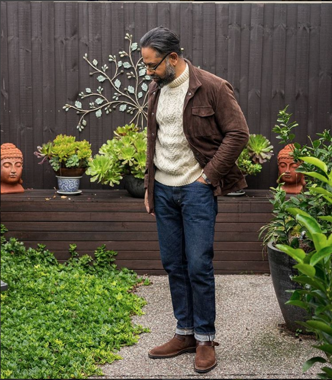 Our Instagram followers are some stylish people, so once a week, we like to bring you some highlights from our feed. Ethan shows how you can wear a polo shirt with a dark business suit; Gus hangs out with our favorite menswear writer, Bruce Boyer; @dadgstyle reminds us that it’s getting chilly in Australia; Ben enjoys the SoCal sunshine; Marco does springtime workwear; and Gerry shows off his own pair of side zip boots, inspired by our recent article.