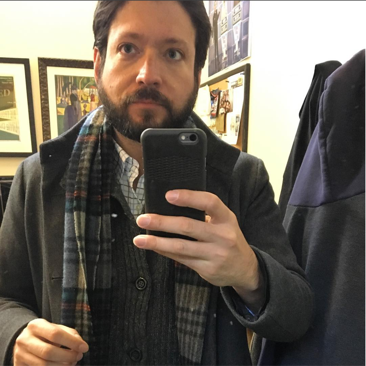 Our Instagram followers are some stylish people, so once a week, we like to bring you some highlights from our feed. Sosa gives the navy/grey look a bit of verve with a long sleeve polo (who, by the way, is 6′9″ which goes to show you that well proportioned clothes can do wonders), Dylan busts out a great chore jacket, Daryl is the king of Mardi Gras and black tie, and Maximum Fun’s own Dan from the Flop House Podcast layers up cozily.