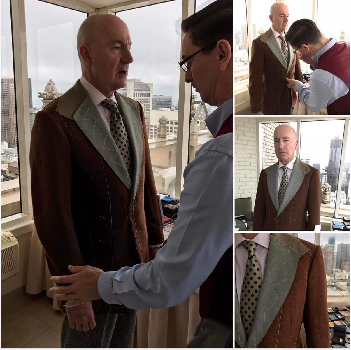 Our Instagram followers are some stylish people, so once a week, we like to bring you some highlights from our feed. This week we get a peek at two of our readers in the midst of making a suit- Gus is at the beginning, picking fabrics, while Andy is on the home stretch of a brand new beauty. Plus, we have Al enjoying a fine dinner and Ian hitting the cobblestones of Edinburgh in style.