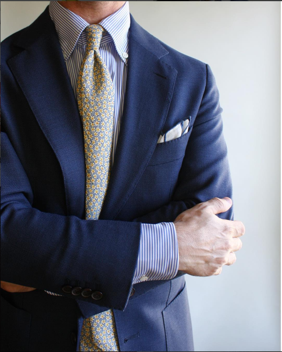 looks this week, using simple colors to great effect. Andreas goes for a light, sandy look while Nic goes dark, Dennis opts for all-blue-everything workwear, and JC adds a little floral fun to his navy look.
