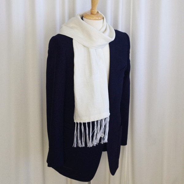 It’s inspired by the flying aces of the world wars. Light enough to wear in summer, long enough to wrap luxuriously when the weather gets cooler. Goes with a sportcoat, a suit or a leather jacket. Simple and elegant.
