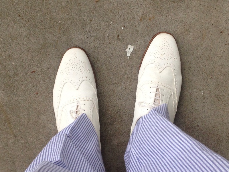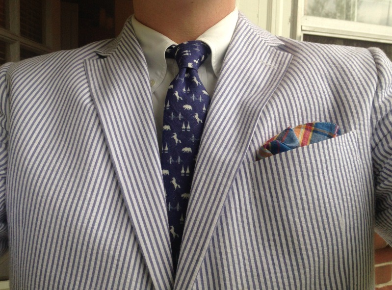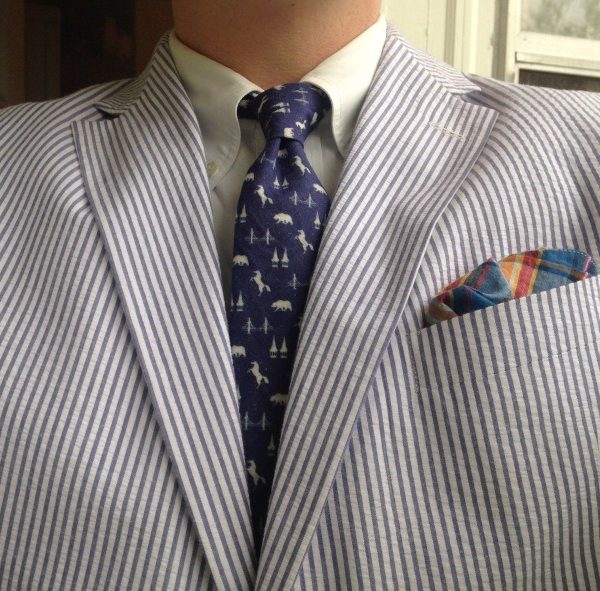 I love The Thrifty Gent’s Derby Day outfit. All thrifted, by the way. Note the horse motif on the tie. If ever there was a day where a ridiculous seersucker costume was appropriate, it’s Derby Day. Especially if you’re a mild-mannered southern minister, which Thrifty Gent is.