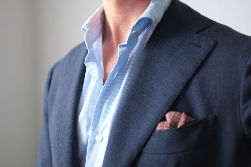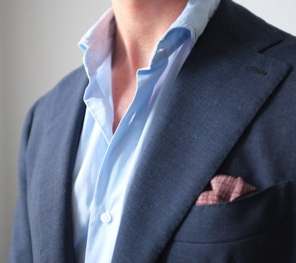 As for what RT is specifically wearing above, the blue Fresco suit was made for him by Napolisumisura (a bespoke tailoring house that’s touring the US right now, incidentally). The light blue shirt with very fine white stripes is from Vincenzo di Ruggiero. It has a soft, unfused collar, which makes it ideal for casual wear. Finally, the burgundy pocket square with a crosshatching pattern is from Bottega Veneta, the dark brown belt from Edward Green, and the dark brown derbies from Crockett & Jones.