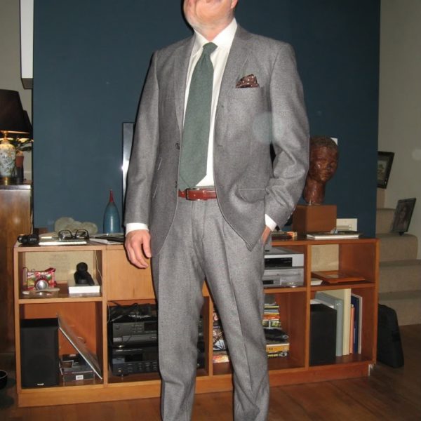 The iron-fisted enforcement of business casual office dress codes means many of us wear suits mostly for non-work occasions, if we wear suits at all. Rob in Los Angeles has a great casual wardrobe, but in compiling a post about it I stumbled on these photos of Rob suited up in gray in non-business settings and was struck by the easiness and elegance of Rob’s suits and accessories, which are neither obsessively businesslike nor sprezzatura’d beyond all relief.