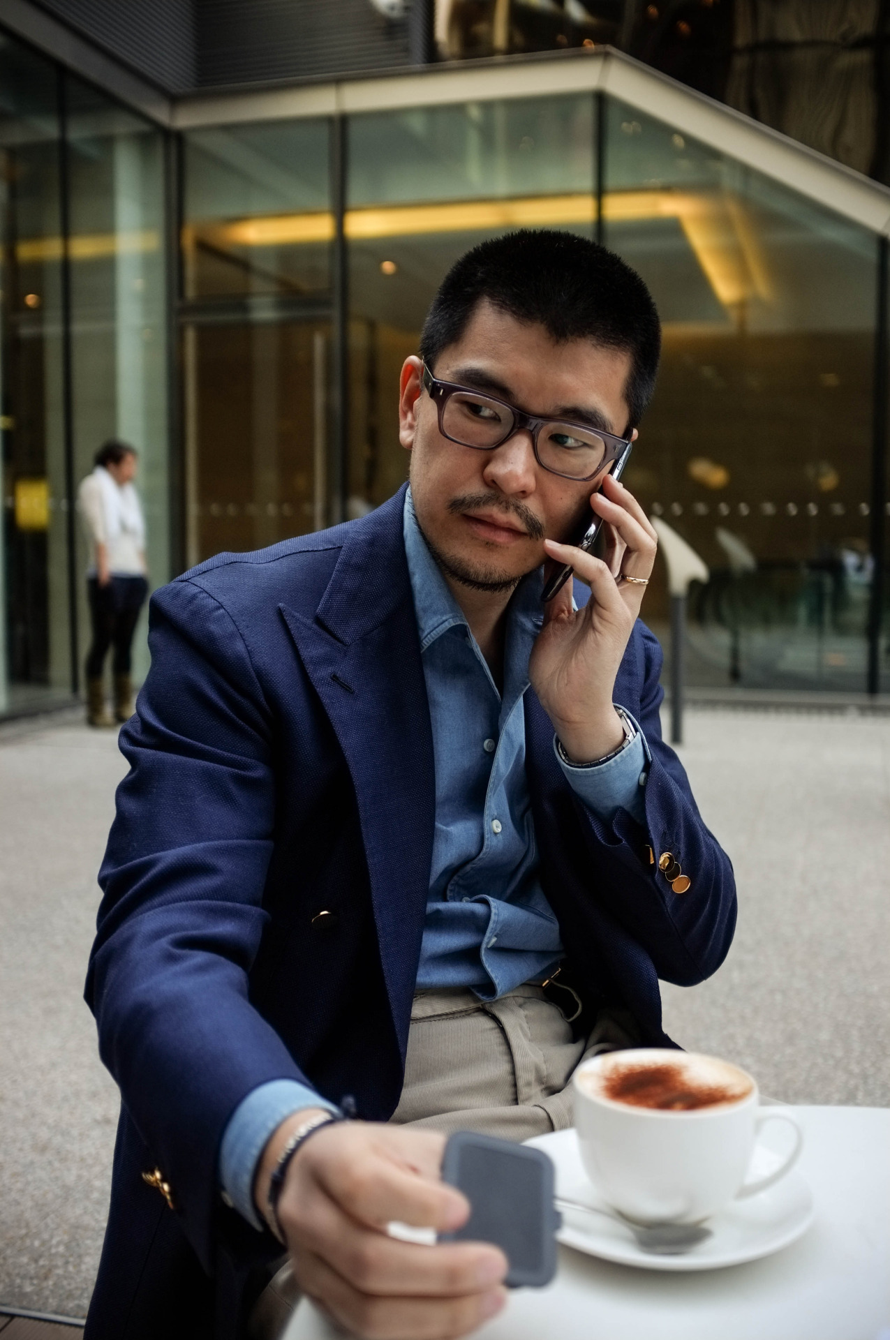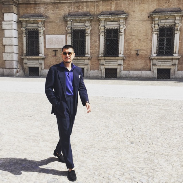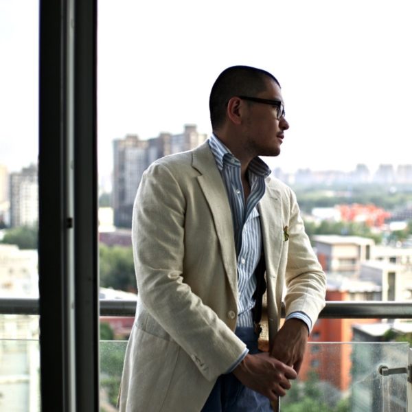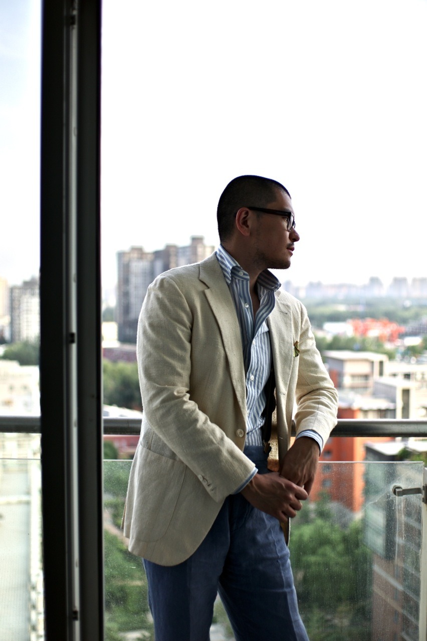 Hard to argue with that, although sometimes it’s just easier to forgo neckwear. An open collar is the easiest way to dress down a tailored jacket, and on a really hot day, the extra breathability can be more comfortable as well. Our friend George in Beijing, who recently opened the menswear shop BRIO, pulls off these sorts of looks well. Some takeaways: