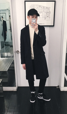 Still, the very ubiquity of on-trend white sneakers may mean their time is waning. In theory I like dark sneakers–olive, all black, colorblocked, etc. Willy in New York (a man who knows his Nikes), above right, wears a black long coat with a rollneck sweater (good pairing) and a pair of black Nike Vandals (a model that also been an inspiration for designer takes). It’s a different look, maybe a little sleeker–and the continuity from pants to shoes can be even stronger with monotone shoes like Common Projects or shoes on the bleeding edge of hype, like Yeezys or Drake’s Jordans. Willy’s still have a white sole and silver accents to break them up. Analytically, maintaining tone from pants to sneakers can potentially elongate the appearance of your legs, but that’s the same kind of logic that sold me white cleats.