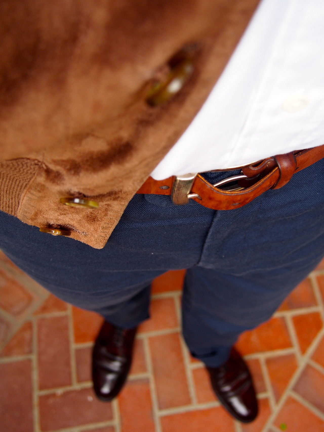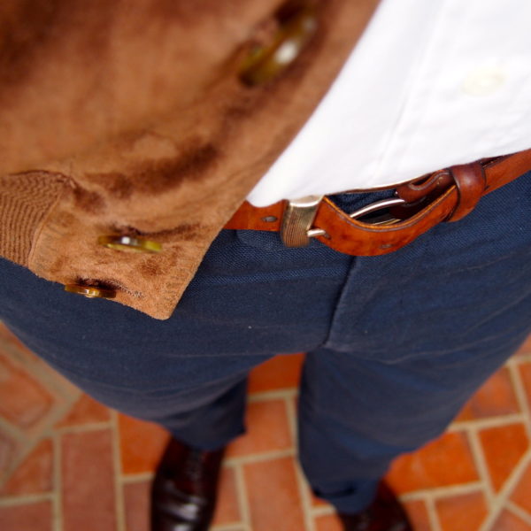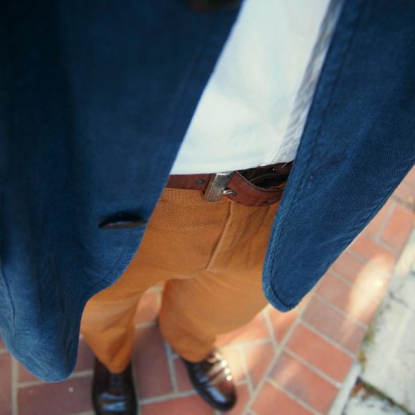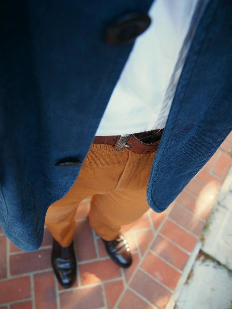Take Ben in Los Angeles, for example. In the above, he’s wearing the plainest of all derbys – the plain toe blucher (aka the PTB). No broguing, cap toes, or any other detailing to set them apart. But with the kind of casual clothing Ben wears on weekends, they look just right underneath those cotton trousers.