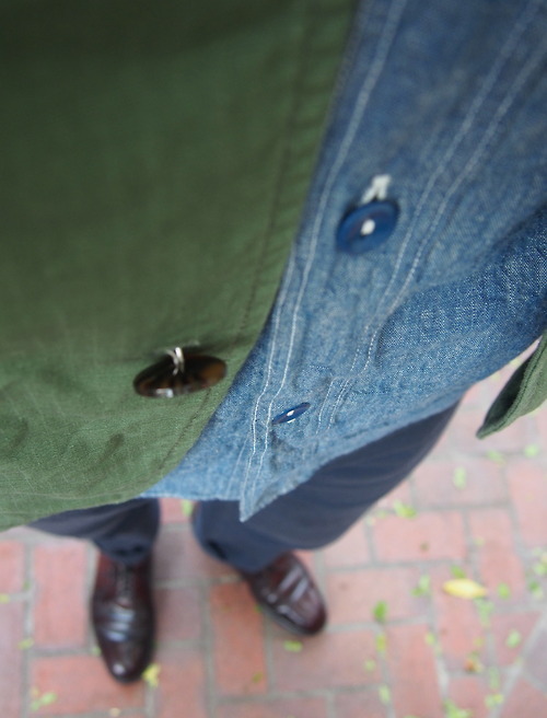 You can, of course, play around a bit with the other details of a PTB to suit whatever style you wear. The shell cordovan of Ben’s Aldens perfectly complement his workwear clothes, while the same style in black calf would go better with the kind of minimalist tailoring Pete featured here. And if PTBs are too plain for you, try a pair with brouging or a split toe. The point really is to just dial back your shoes so that they’re in concert with whatever you’re wearing. Unless you’re in a suit, oxfords are more often than not going to look too formal. If you’re not so dressed up, consider something like a derby.
