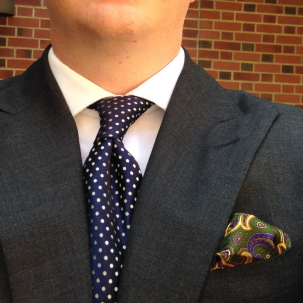 Jeff in Louisville, however, shows how to do it well. The key is to get a jacket with a traditional buttoning point, where the center of a three-button coat, or top button on a two-button coat, sits at your waist. This gives the lapel its optimum length without making the bottom of your jacket look unnaturally short. A slightly wider lapel than what’s popular these days will also allow those peaks to express themselves. Jeff’s suit executes all this perfectly.