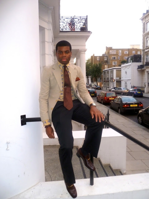 Of all the bold dressers I know, few are as stylish as Barima in London. He describes his style as a sort of flamboyant minimalism. “As a Brit, I’ll never quite escape the lure of a grey or blue suit, even if it’s houndstooth or shot silk,” he says. “The details are more stripped down nowadays, partly because I wear suits more than separates, but the colors persist.” Such grey or blue suits get paired with bolder items, such as vintage ties or unusually colored shirts. (The wearing of bold shirts is actually a very British thing, although Barima says he gets his inspiration from elsewhere. “Many of my favorite dressers are British or American, but the deeper I get into Francafrique, the more I identify with the great tailors of Paris and the dangerous dignitaries who love them.”)