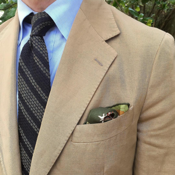 Of course, coordinating patterns becomes increasingly difficult as you add more and more on. Which is why the easiest solution is to stick to two. See our friend Pete in San Francisco for good examples. Sometimes he wears a patterned jacket with a patterned square. Other times, the patterns are only in his accessories. Adding any thing more here risks having patterns clash; any fewer and the single pattern can look a little lonely.