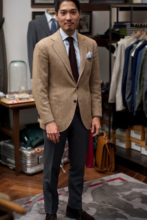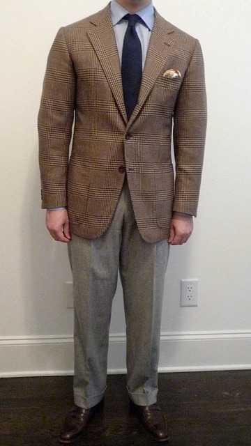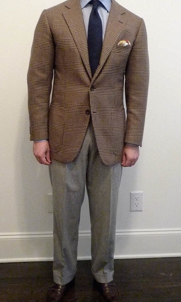 Of course, as I said, there are exceptions. A grey herringbone or speckled Donegal tweed jacket can be incredibly beautiful and versatile, but before getting one of those, I think you should acquire something in brown. You can more easily wear it with the pants you probably already own – grey dress trousers, dark blue jeans, and khaki chinos. This allows you to not have to go out and buy a collection of pants just to wear with your one jacket, which when you’re on a budget, can be very valuable. The difference between brown and grey for your second sport coat is likely to be the difference between building a wardrobe and building outfits. Do the first.