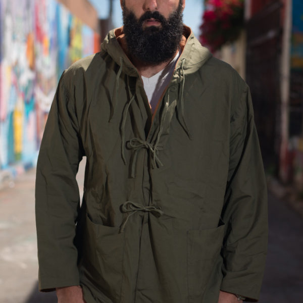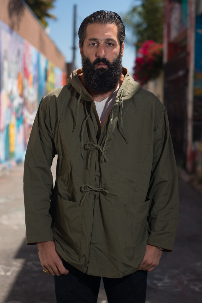 - Monitaly Field Shell ($200): A reversible, military style jacket made from brown cotton flannel on one side and olive green Vancloth on the other. Like Ventile, Vancloth is a tightly woven poplin where the fibers swell up when they get wet, closing up the pores and preventing any moisture from leaking through. That makes the fabric appreciably water resistant, while not being as stiff or noisy as technical cloths.