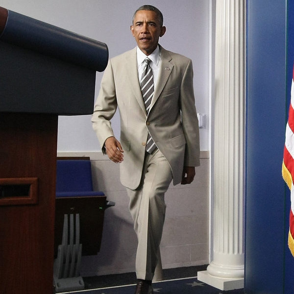 You can see this in the photos of Presidents Obama and Reagan, who are wearing more traditionally cut and constructed suits. The shoulder line is cleaner; the length doesn’t look absurdly cropped. And although Spencer’s suit is cotton – which accounts for many of the wrinkles – you can tell Obama and Reagan’s suits also just hang better. Frankly, they don’t look like they’re wearing their younger brother’s clothes, dredged out of the back of some closet.